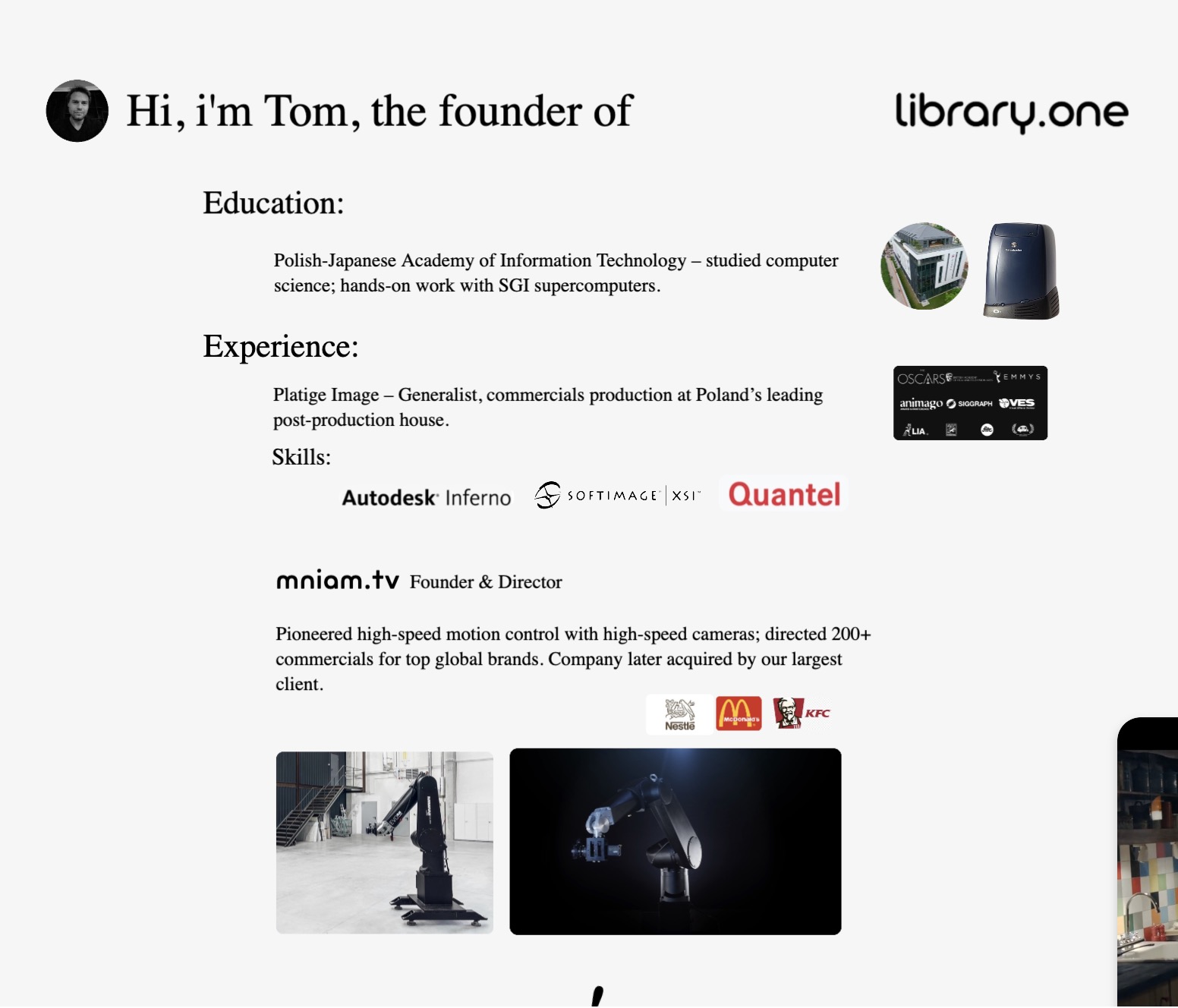 Sign up for free at library.one and start building your infinite canvas workspace immediately. Create portfolios, CVs, and project showcases with our tree-based content organization system.